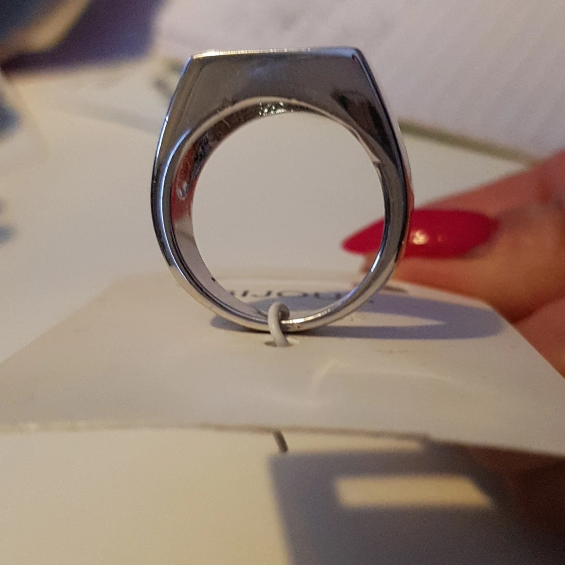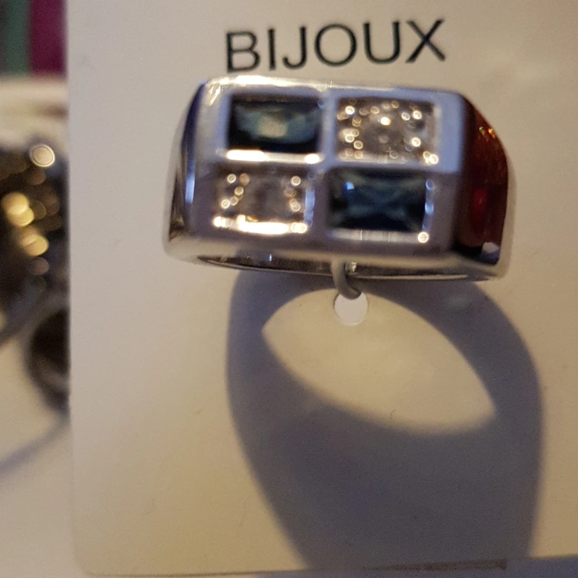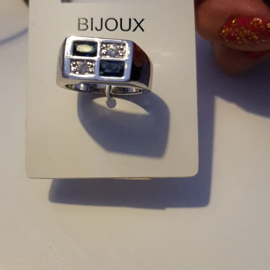 Silver färgad ring med blå vita stenar. Ordinarie pris 98,50. Oanvänt!