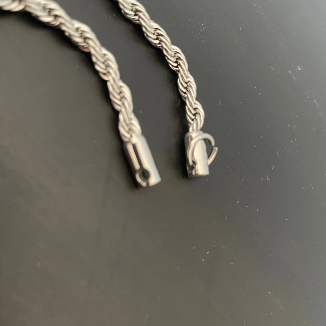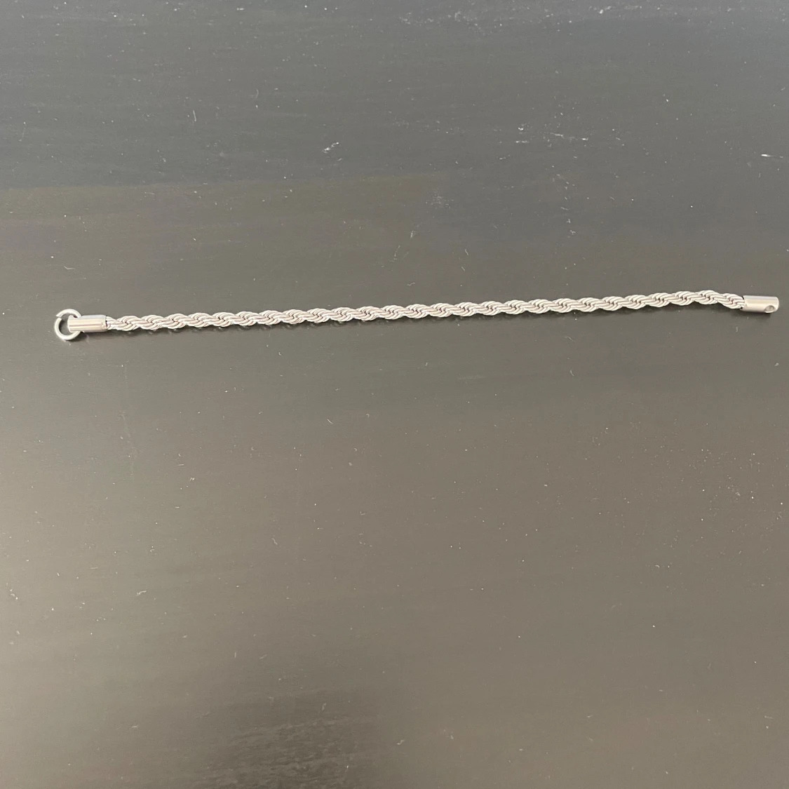 Snyggt armband i silverfärg med flätad design. Kedjan har en tvinnad look som ger en cool och stilren känsla. Perfekt för dig som gillar minimalistiska accessoarer med det lilla extra. Lätt att matcha med andra smycken.