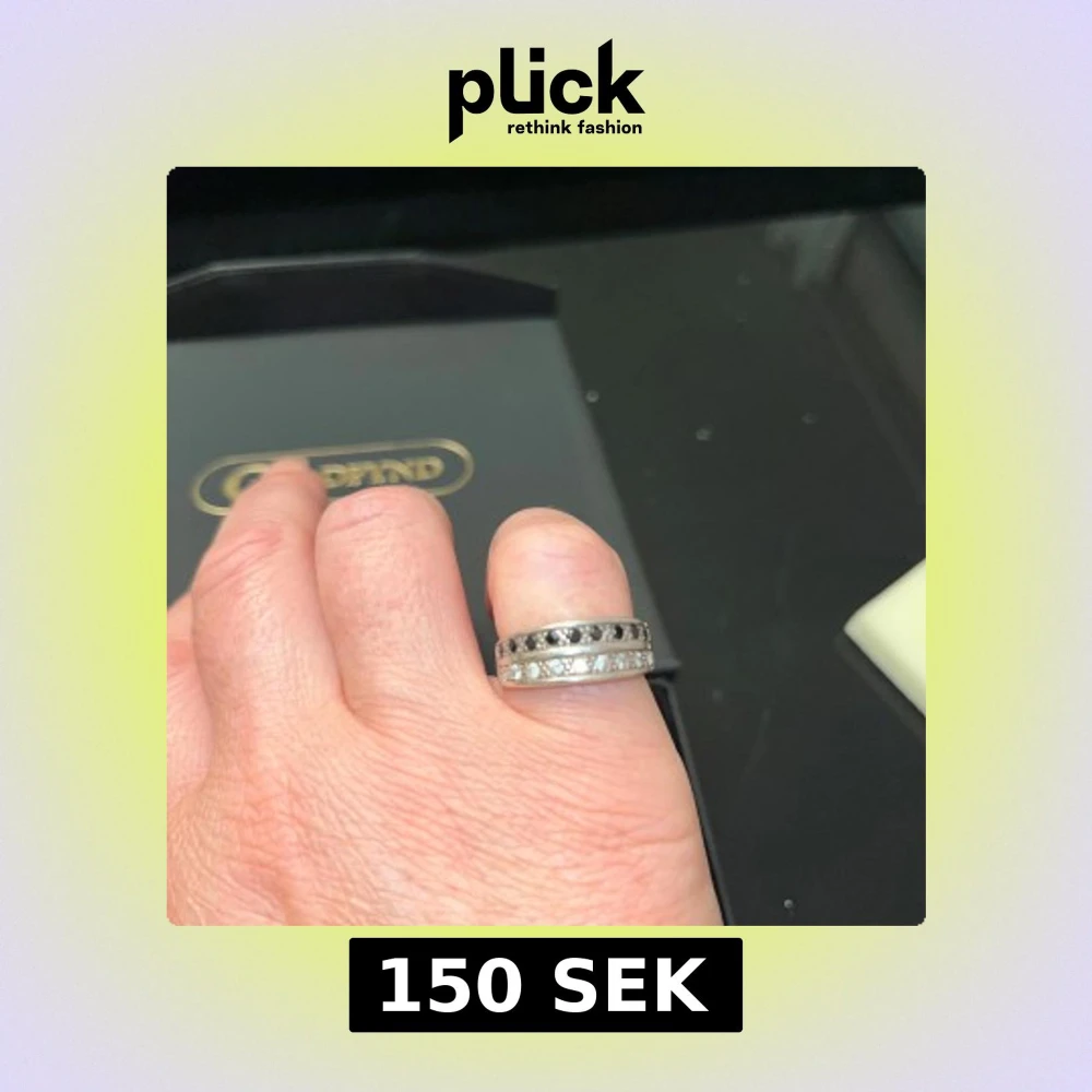 Cool bred silverring i 925 sterling silver med två rader gnistrande vita stenar och en rad svarta stenar i mitten. Ringen har en modern och stilren design som sticker ut och passar perfekt för dig som gillar attityd och detaljer.