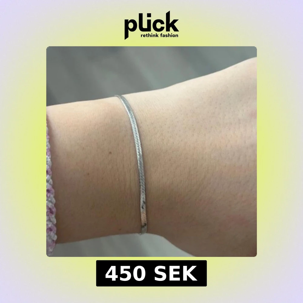 Snyggt och minimalistiskt armband i silverfärgad metall med platt, glänsande kedja. Armbandet har ett litet grönt hänge vid låset som ger en extra detalj. Perfekt för dig som gillar stilrena smycken med en liten twist.