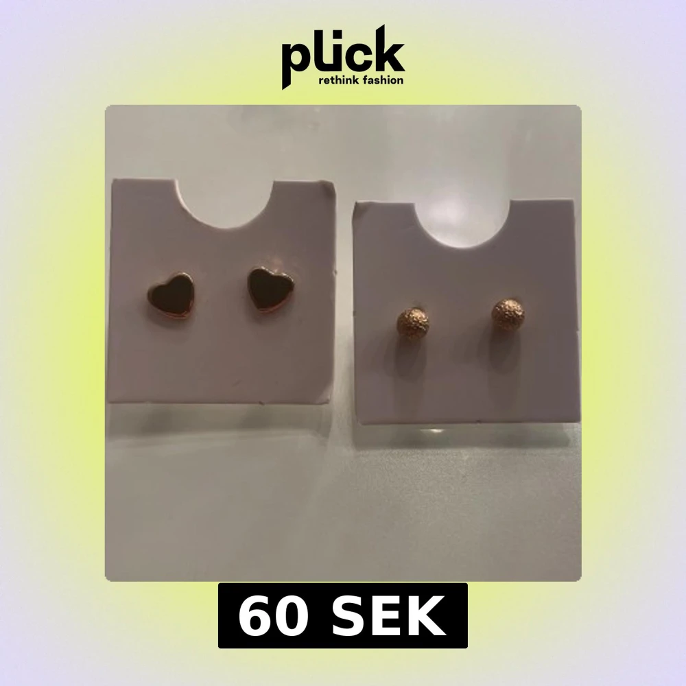 Två par stilrena guldörhängen, ett par i hjärtform och ett par med rund design. Perfekta för att ge en elegant touch till din outfit.