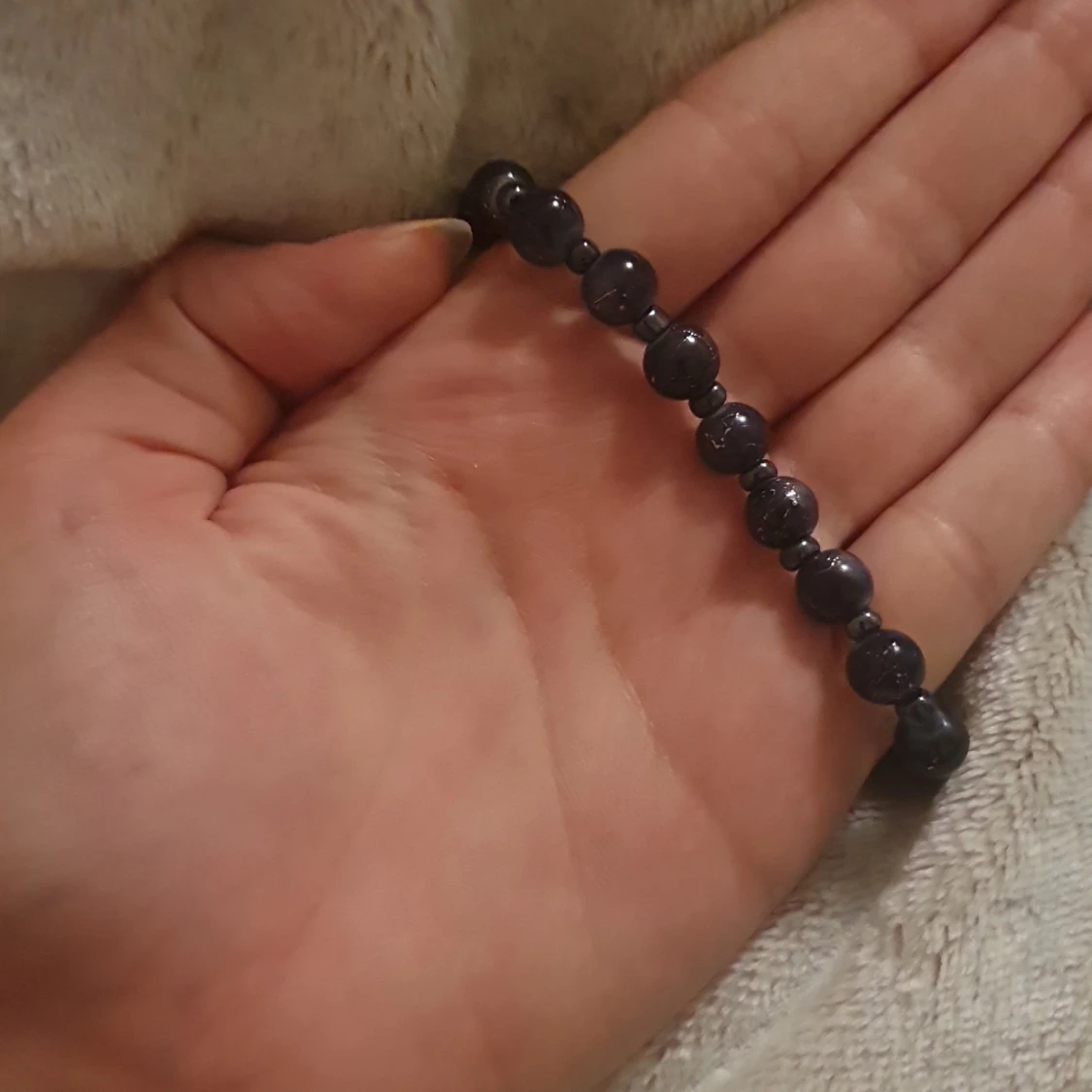 Snyggt armband med svarta, runda pärlor och ett stilrent silverfärgat lås. Pärlorna har en glansig finish och är trätt på en stark tråd. Perfekt accessoar för att ge din outfit lite extra edge.