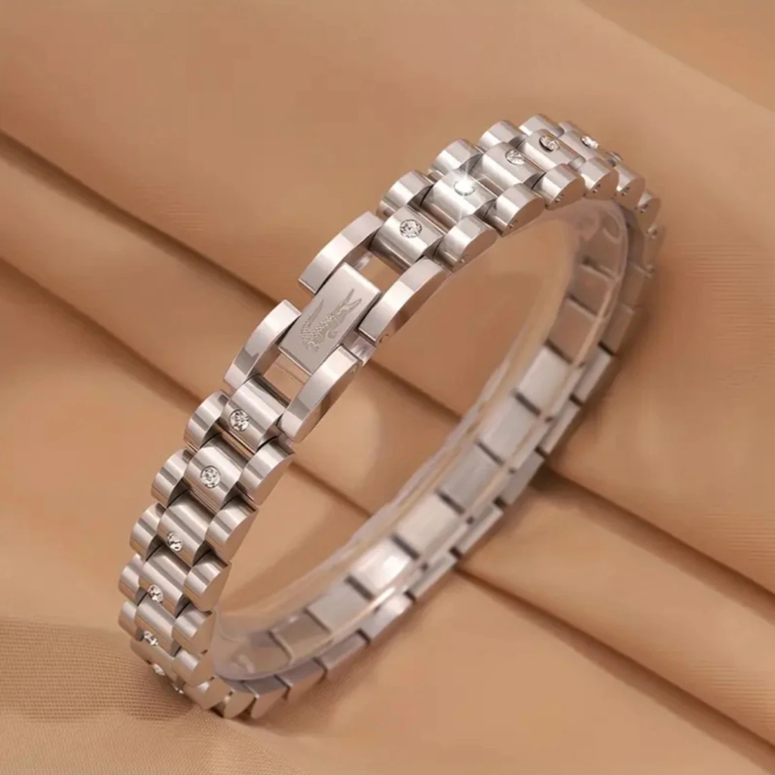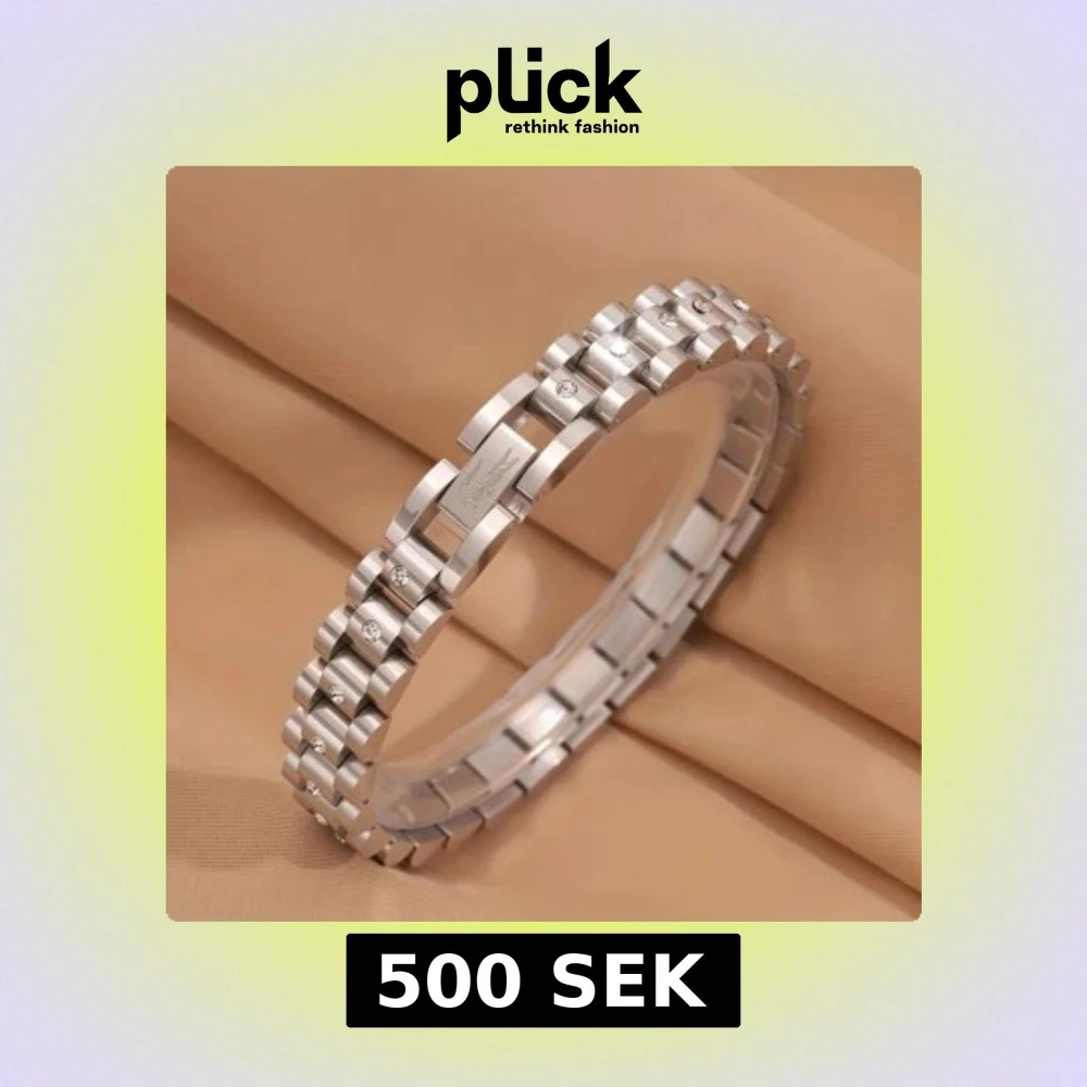 Stilrent armband i silverfärgad metall med en länkdesign och små gnistrande stenar infällda i flera av länkarna. Armbandet har en modern och clean look, perfekt för dig som gillar detaljer och vill ha något som sticker ut lite extra.
