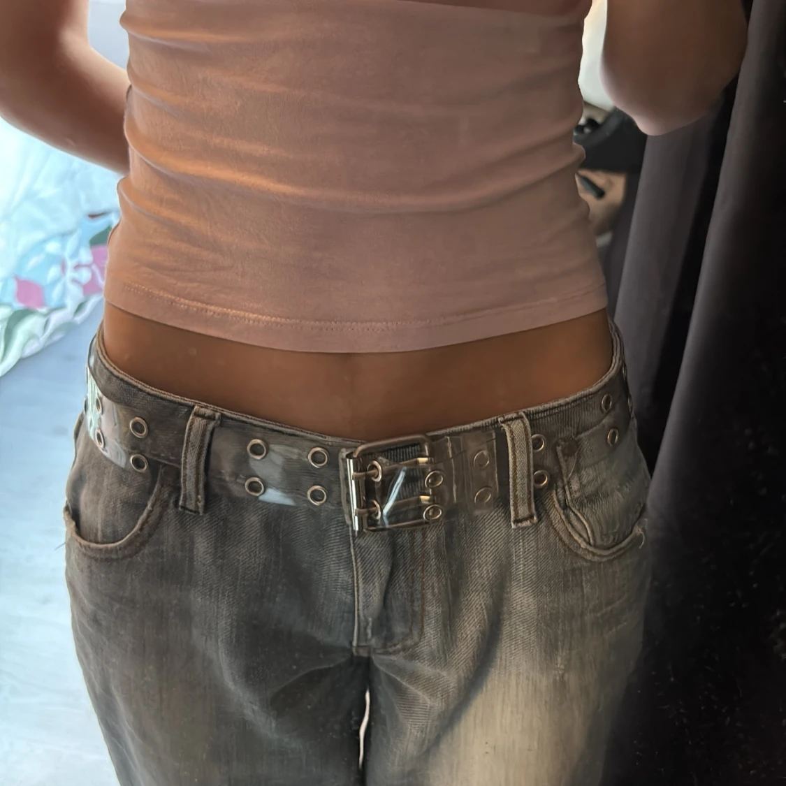 2000s y2k vintage love mcbling genomskinligt bälte