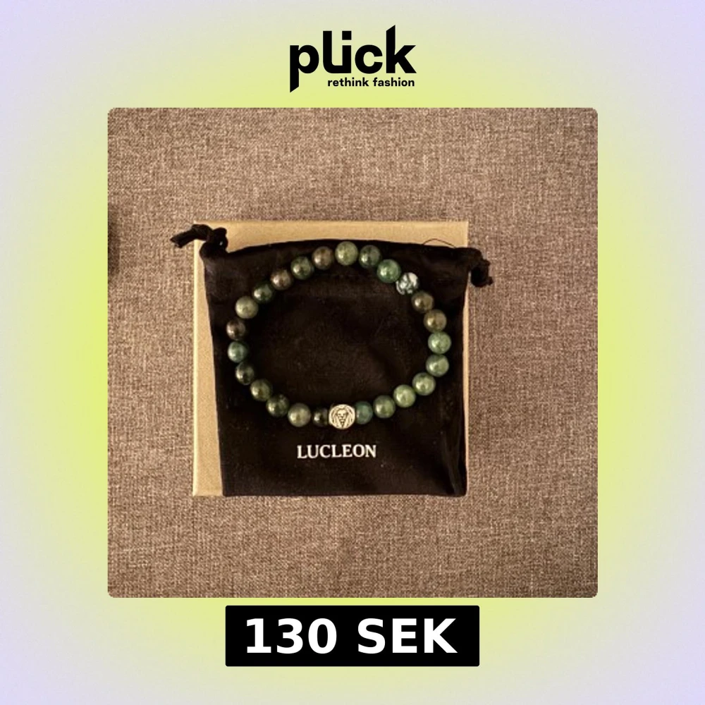Stilrent armband med runda gröna pärlor och en silverfärgad detalj med ingraverad logga. Kommer i originalpåse och ask, perfekt accessoar för att lyfta din look.