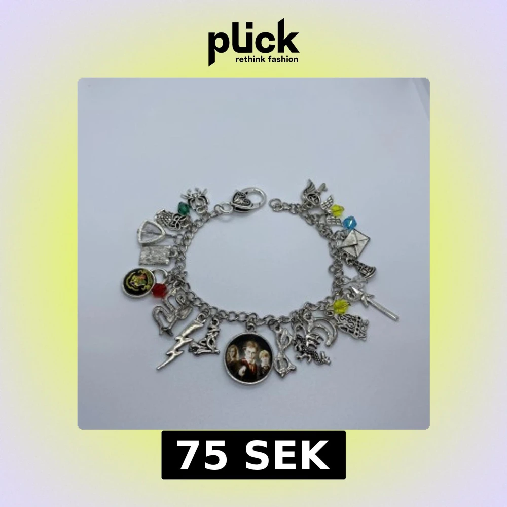 Armband med Harry Potter-tema i silverfärg. Massor av detaljerade berlocker som blixt, uggla, trollstav, bok, Hogwarts-emblem och färgade pärlor. Perfekt för dig som älskar magi och coola accessoarer. Storlek är ca 22 cm.