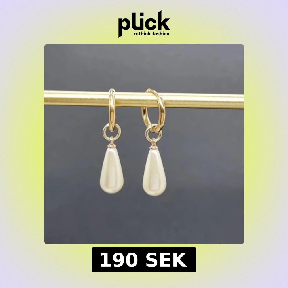 Stilrena örhängen i guldton med droppformade vita pärlor som hänger från små ringar. Perfekta för dig som gillar klassisk men ändå trendig stil. Kommer i en snygg svart ask.