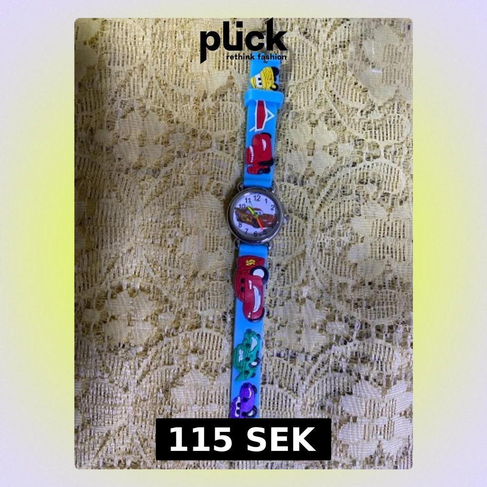 Säljer en cool analog klocka med motiv från Disney Cars. Finns i både blått och rött armband med flera färgglada bilar och detaljer. Rund urtavla med tydliga siffror och bilmotiv även på visarna. Perfekt för dig som gillar bilar och vill ha något unikt på handleden. 3 år + . 115kr/st