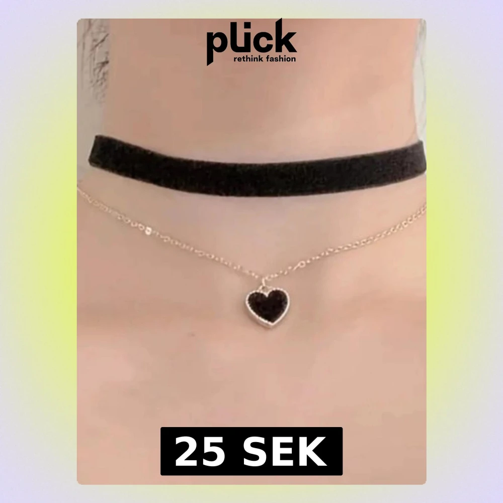 Snygg svart choker i sammet med ett tunt kedjehalsband och ett hjärthänge i svart och guld. Chokern har ett klassiskt, brett band och hjärtat är ca 1,4 cm högt. Perfekt accessoar för att ge din outfit en cool och trendig vibe.