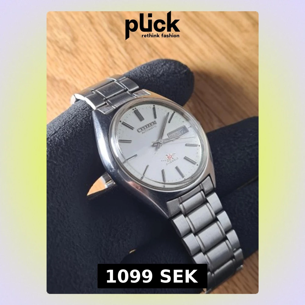 Vintage Citizen Eagle 7 (~1970) 21-jewel automatic (self-winding) Sällsynt vit/silver urtavla Hesalitglas Mycket bra skick för dess ålder. Urtavlan är lite dammig vid närmare granskning. Finns mindre tecken på ålder. Dock helt funktionell och håller tiden väl. +/- 30s per dygn Diameter: ~34mm Armband passar upp till ~18cm