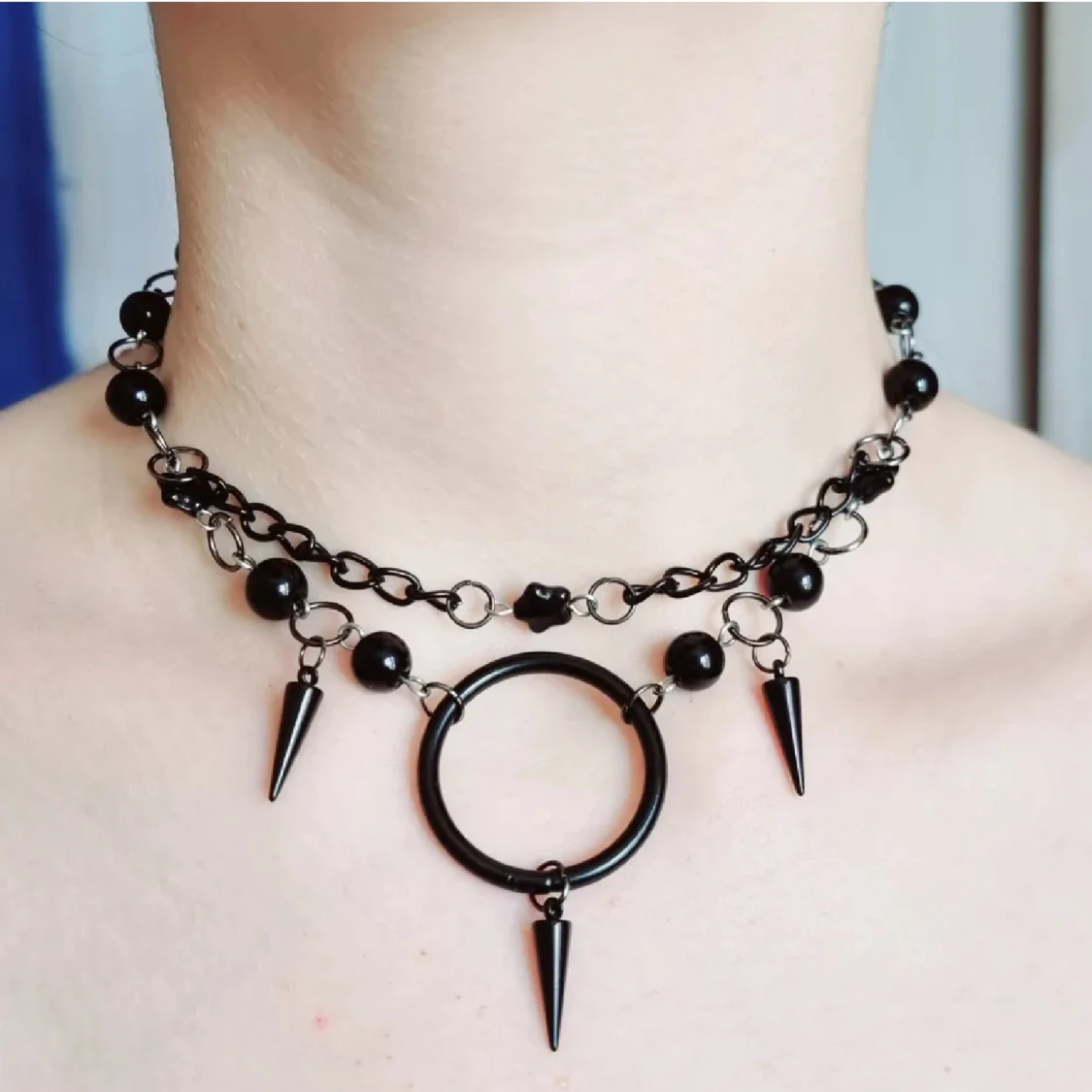 Handgjort unik halsband och exklusiv designđ€ đâïžGjord i bra kvalitetđMaterial- rostfritt stĂ„l och oniks sten. LĂ€ngd: 36cm+3cm. Halsband inte vatten och Ă€r kĂ€nsliga mot fukt Priset-180kr