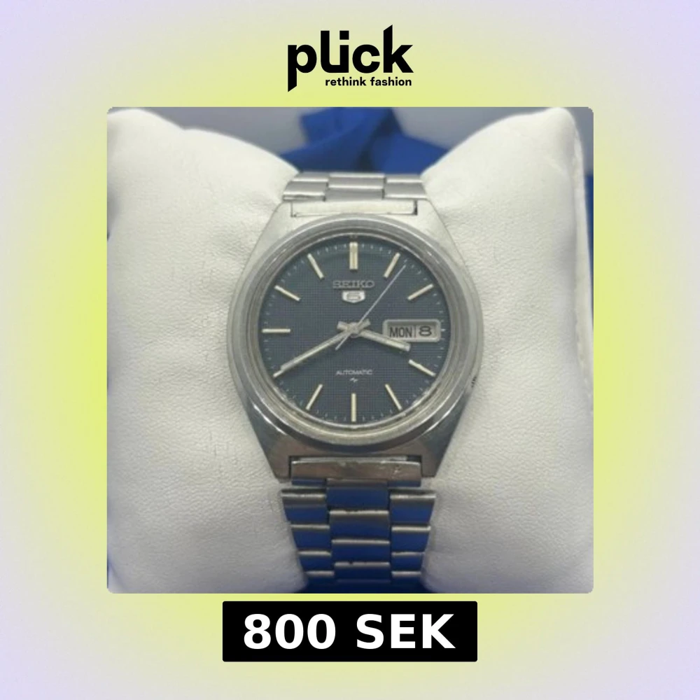 Säljer en klassisk Seiko 5 herrklocka med automatisk urverk och dag/datumvisning. Klockan har en rund grå urtavla med stilrena index och boett samt länk i rostfritt stål. Referensnummer 7009-8750A. Perfekt för dig som gillar retro och tidlös design.