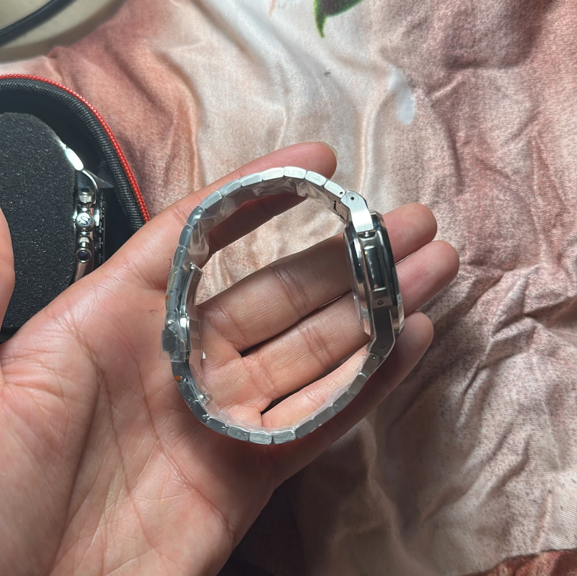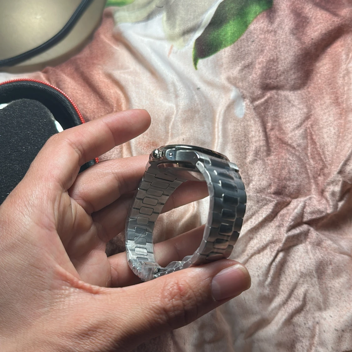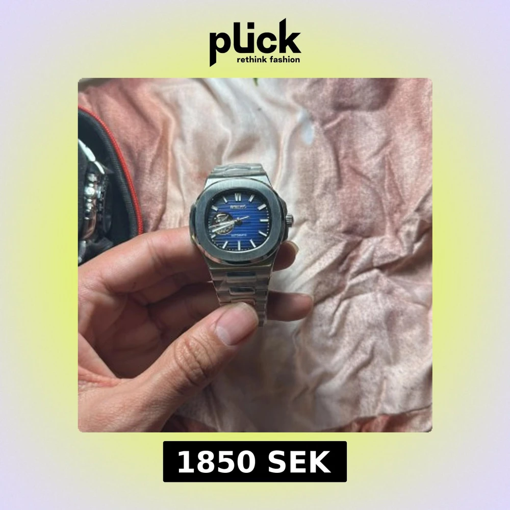 Säljer en Seiko herrklocka i rostfritt stål med blå urtavla och öppet hjärta. Klockan har ett automatiskt urverk och länkarmband i silverfärg. Snygg och modern design med tydliga index och visare.