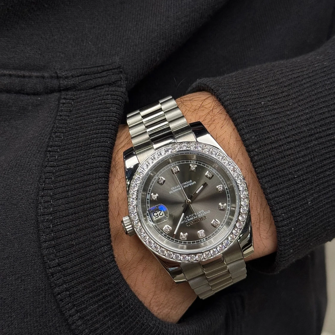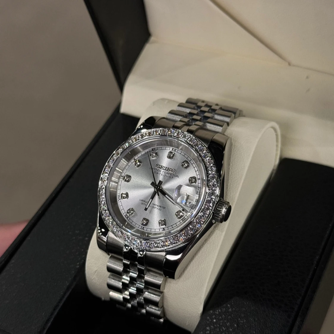 Seiko mod Datejust silver diamonds