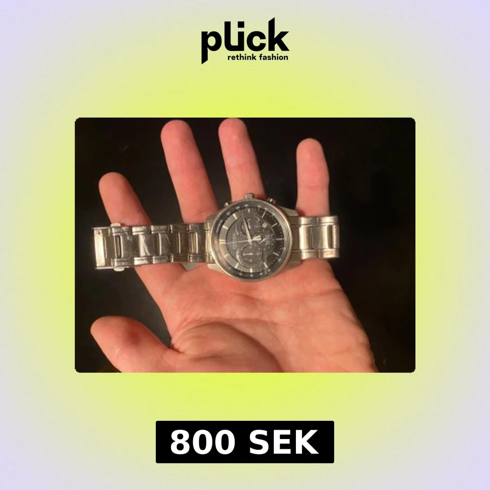 Säljer en snygg Citizen herrklocka med robust silverfärgat metallarmband och mörk urtavla med flera funktioner. Klockan har rund boett, tydliga visare och datumvisning. Perfekt för dig som gillar stilrena accessoarer med teknisk känsla.