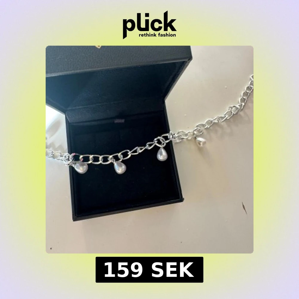 Snyggt halsband i silverfärgad kedja med fem hängande droppformade pärlor. Kedjan har ett chunky utseende och pärlorna ger en cool och trendig vibe. Perfekt för att lyfta din outfit med lite extra bling och stil.