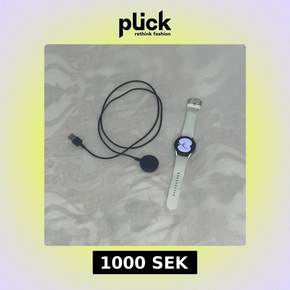 Säljer en vit smartklocka från Samsung med runt ur och silikonarmband. Klockan har en slät design och kommer med en trådlös laddare. Perfekt för dig som gillar teknik och vill ha koll på hälsan. Den har Wifi Bluetooth GPS och LTE.