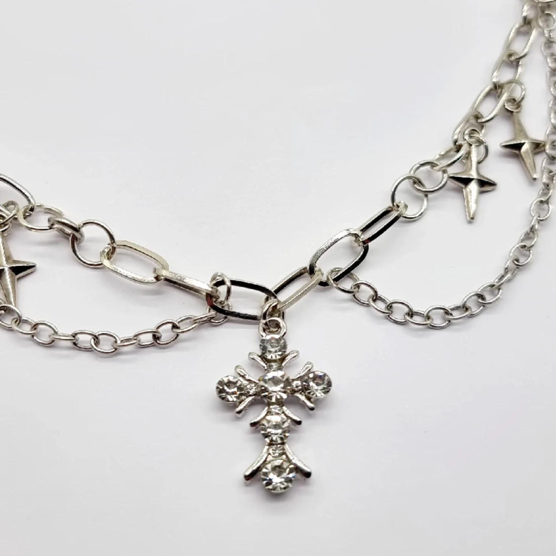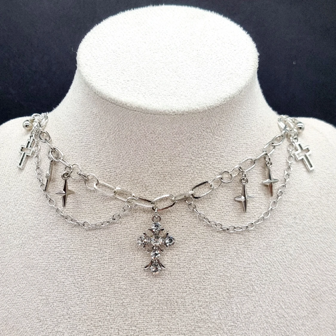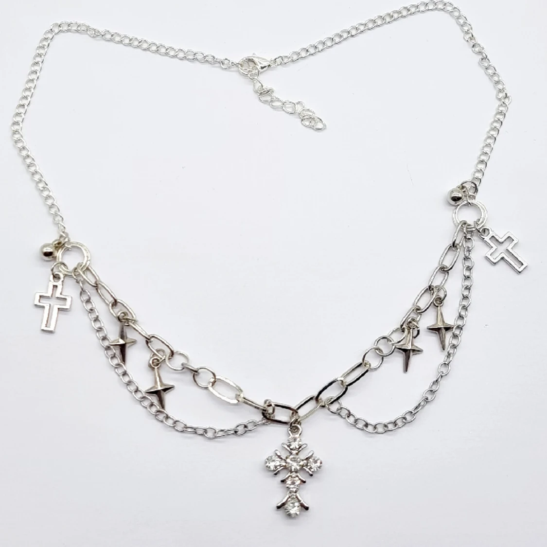 Handgjort halsband och exklusiv designđ€ Gjord i bra kvalitetđMaterial- rostfritt stĂ„l, zinklegeringar,plast och glas. Nickel fri. LĂ€ngd: 42cm + 5cm, priset-150kr