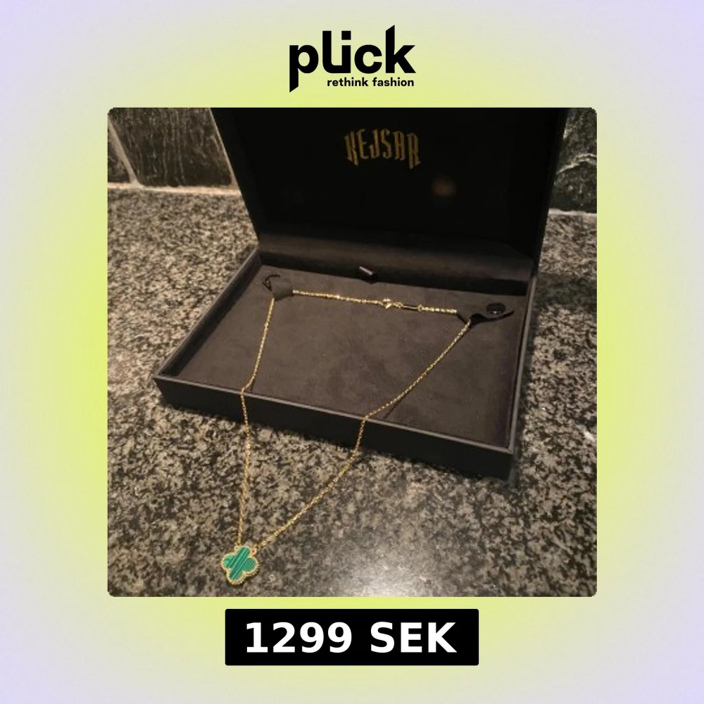 Elegant guldhalsband från Kejsar med en grön fyrklöverberlock. Perfekt för att lägga till en touch av lyx och färg till din stil. Halsbandet kommer i en stilren svart ask. Levererad idag, nypris 1499