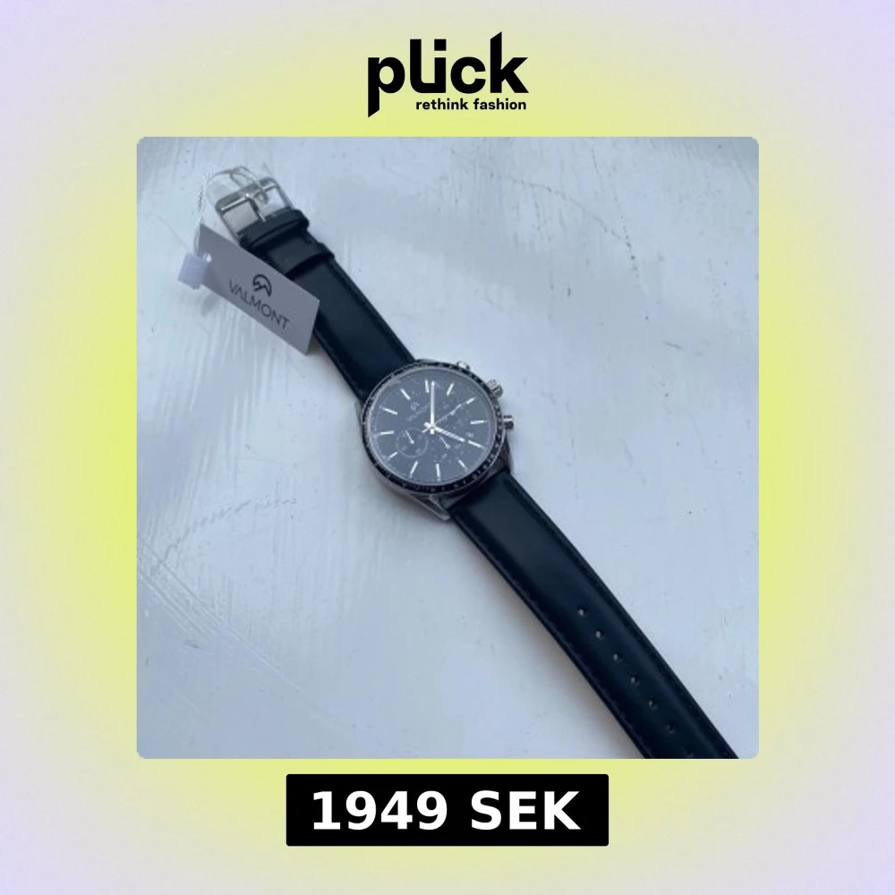 BUTIKSPRIS 3049kr. Stilren kronografklocka från Valmont med svart urtavla och silverfärgade detaljer. Klockan har svart läderarmband och boett i silverfärgad metall. Urtavlan har flera små visare och tachymeter-skala runt kanten. Perfekt accessoar för en modern look. PRISET KAN DISKUTERAS.