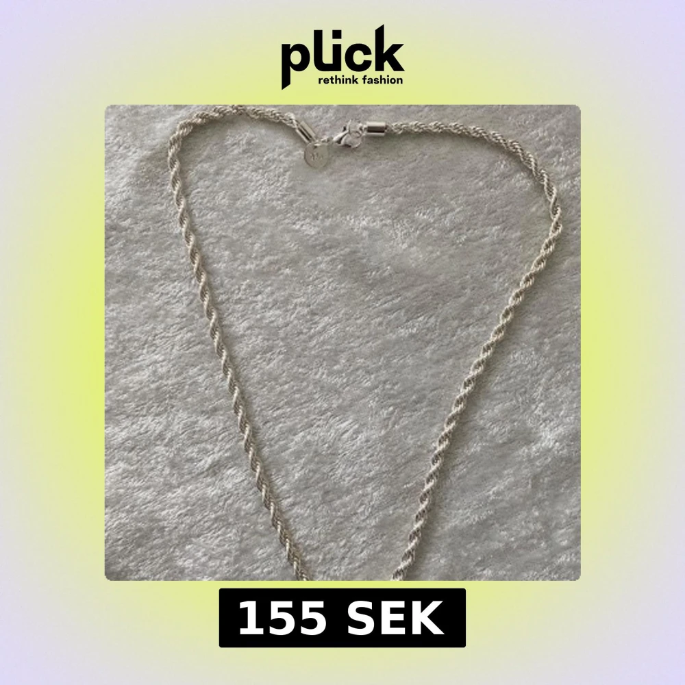 Elegant Silverpläterade halsband med en tvinnad design. Perfekt för att ge en stilren touch till din outfit. Halsbandet har en enkel låsning och en liten rund bricka vid låset. Helt ny