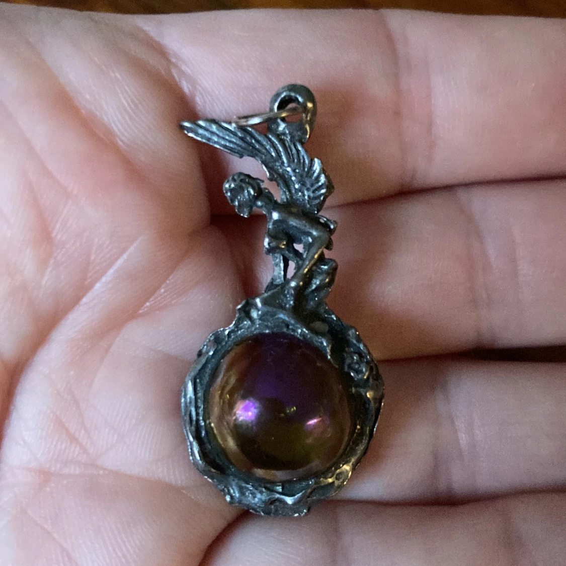 Hänge med fe älva ca 4 cm högt. Oxidera metall Kan skickas 17kr frimärke