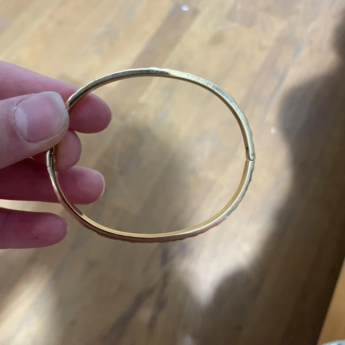 Köpt för 500 kr säljer för 400kr, priset kan diskuteras. Använd i 1,5 månad sen köpte en annan. I perfekt skick. Snyggt armband i guldton med hamrad yta från Astrid & agnes S.steel.