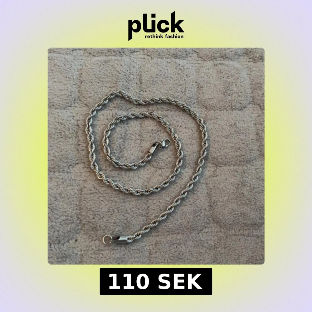Säljer ett stilrent halsband i silverfärg med tvinnad kedja. 51 cm långt. Kedjan har en snygg, vriden design och ett klassiskt lås. Perfekt för dig som gillar enkla men ändå iögonfallande smycken.