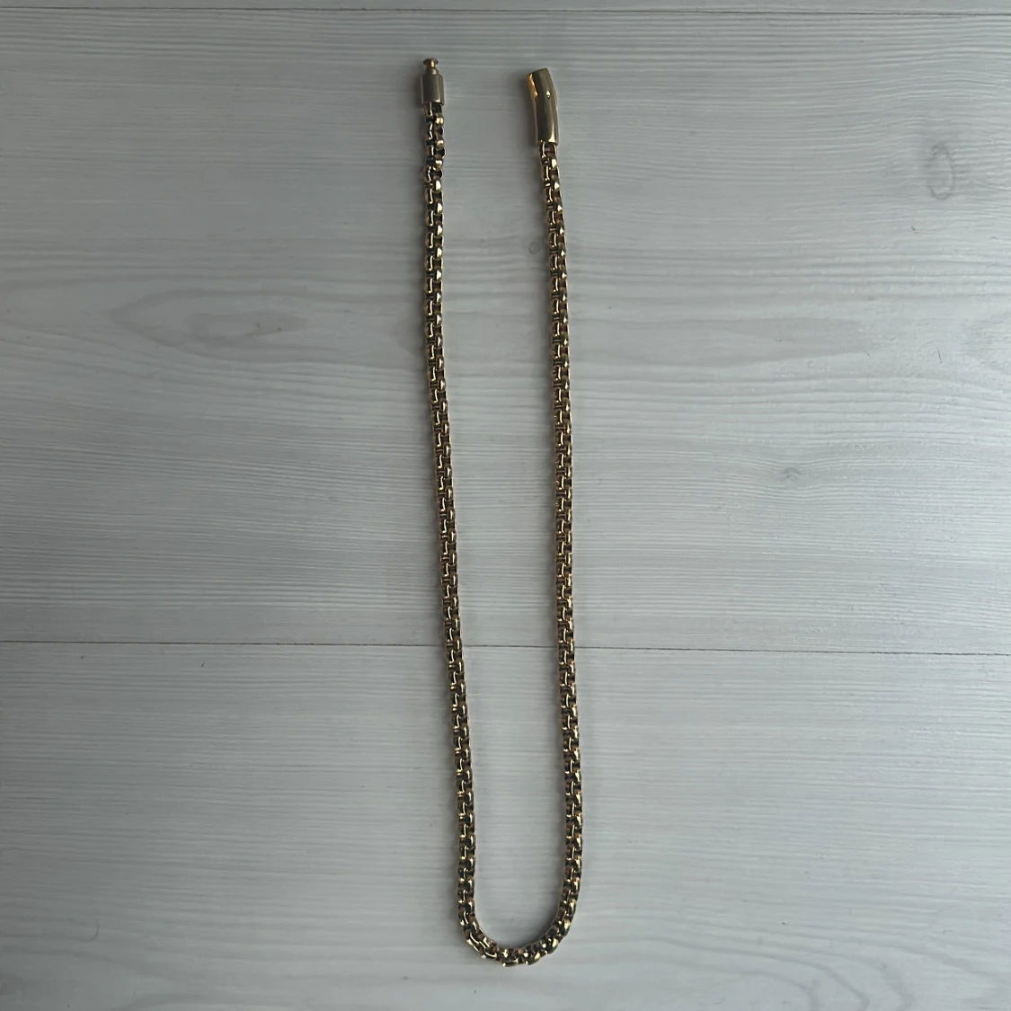 Säljer detta guldhalsband. Den är guldpläterad och köpt från guldfynd för 3099kr för ca 1 år sen. Säljer den pga att jag är mer av en silver person. Den har därmed bara legat. Halsbandet är 55cm lång och 5mm tjock.
