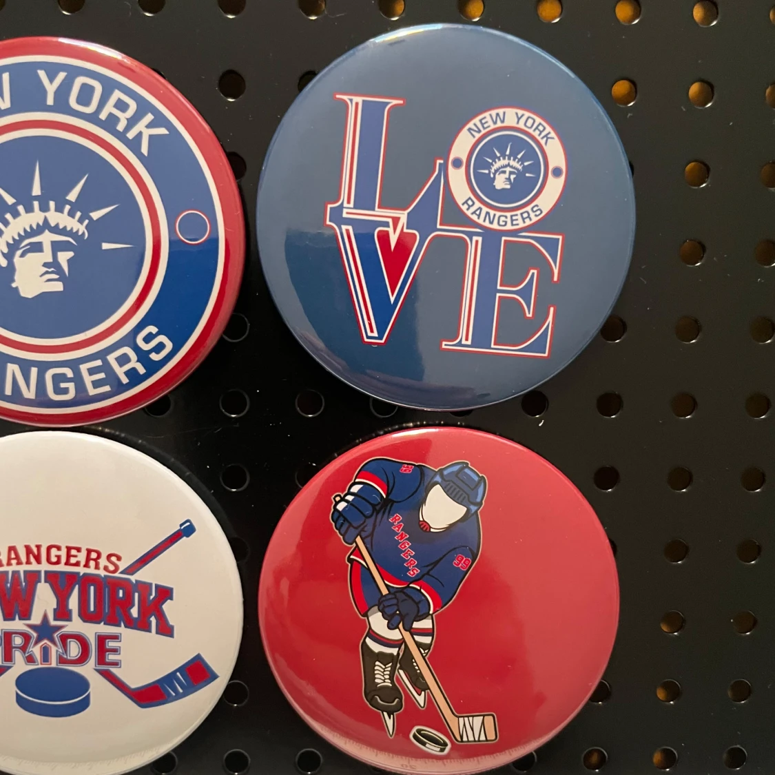 Selling 6 pcs- Mew York Rangers NHL magnets. The magnets are round, metal with plastic backside. The magnets have a diameter of about 6 cm. New condition.