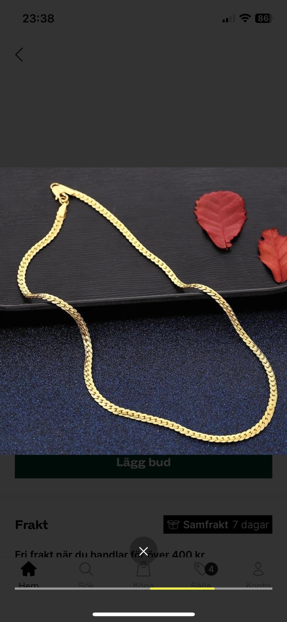 Elegant halskedja/ länk, halsband. 18 k guldpläterad. Längd 60 cm Bredd 0,5 cm