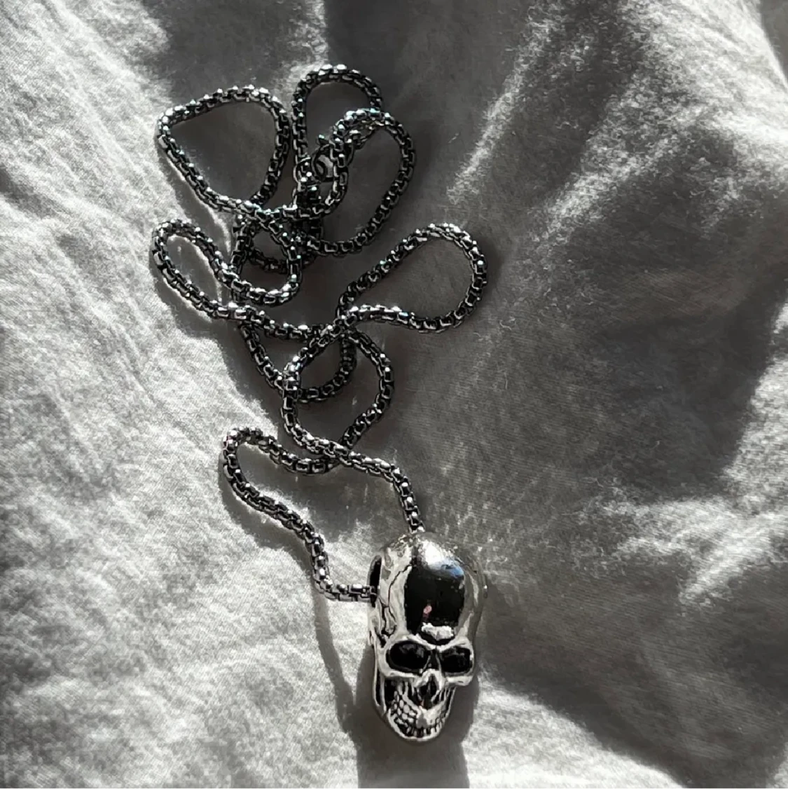 Svincoolt döskallehalsband!!! Aldrig använt och det är ca 50cm långt💕🧡Köparen står för frakten!!💀
