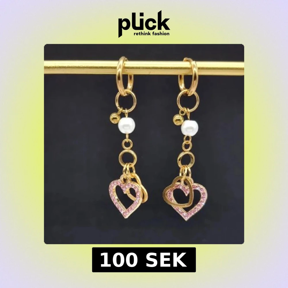 Eleganta guldörhängen med hängande hjärtan dekorerade med rosa stenar och vita pärlor. Perfekta för att ge en romantisk touch till din stil.Handgjorda örhängen 🖤Gjord i bra kvalitet 💎●Material-100% rostfritt ,zinklegeringar och glas pärlor●Örhängeskrokar -rostfritt stål. Nickel fri. Längd -6cm