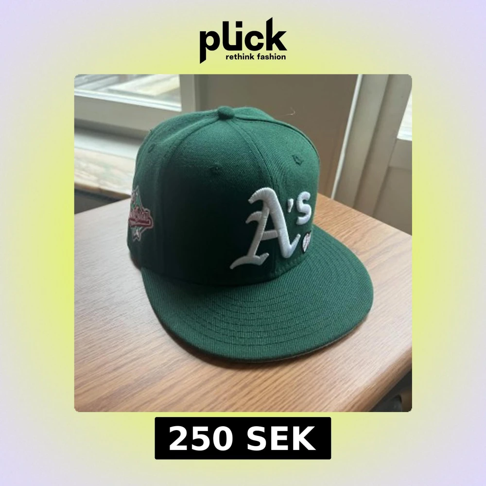 Snygg grön 59FIFTY keps från New Era med Oakland A's logga broderad framtill och World Series 1989 patch på sidan. Kepsen har platt skärm, broderade detaljer. Kepsen är i nyskick och är i st 7 1/4( 57.7cm), hör av er vid mer frågor