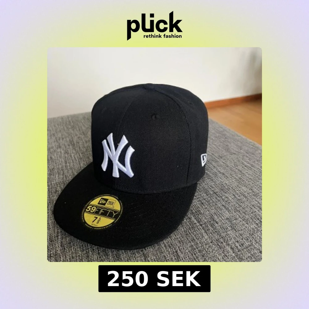 Klassisk svart New Era 59FIFTY keps med New York Yankees-logga framtill och World Series-märke på sidan. Den är liten i storlek så typ 59 cm