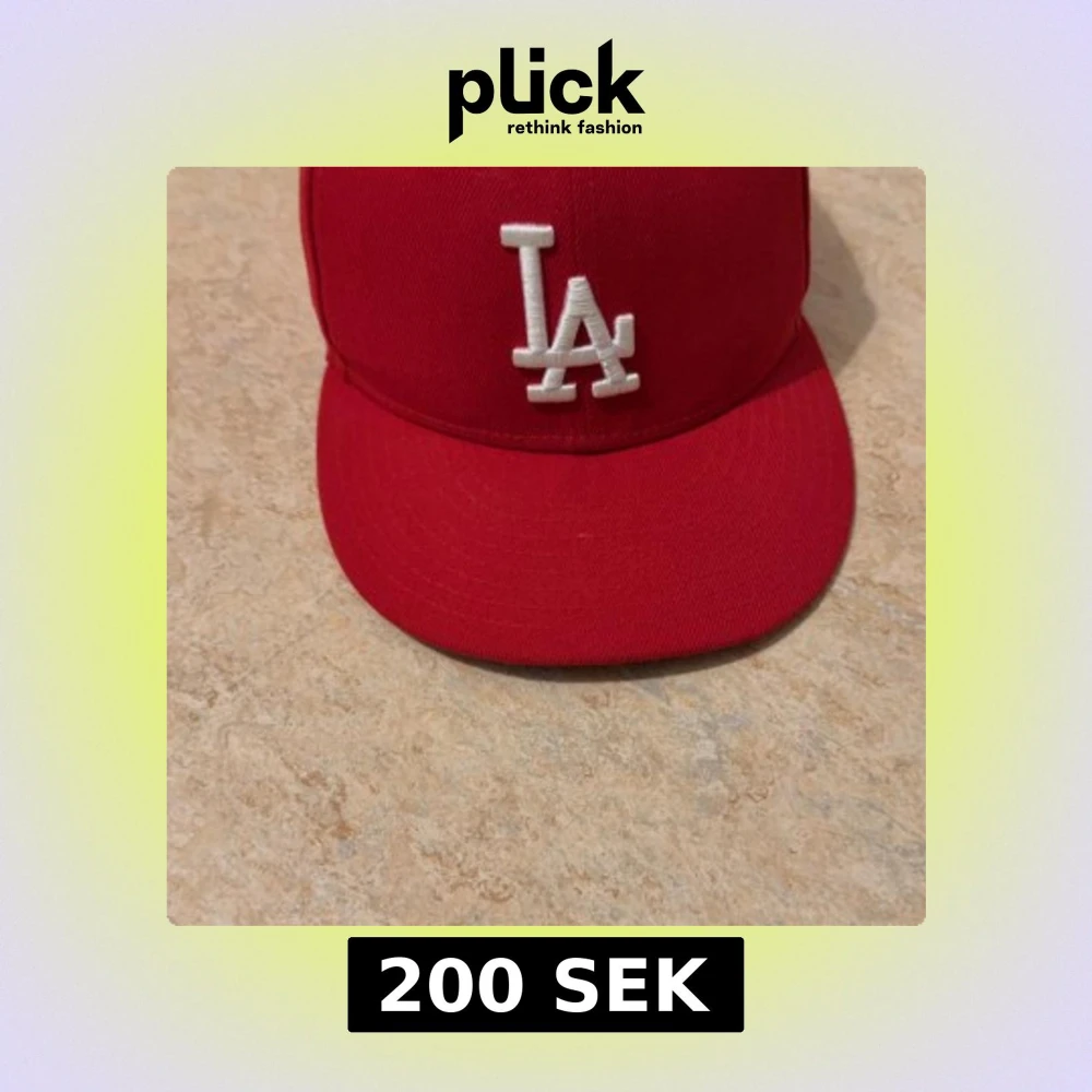 Snygg röd 59FIFTY keps från New Era med LA-logga broderad i vitt framtill. Klassisk flat brim och MLB-märke baktill. Kepsen är i storlek 7 3/8 och har en stilren look som passar perfekt till streetwear. Materialet är bomull och kepsen har en strukturerad form.