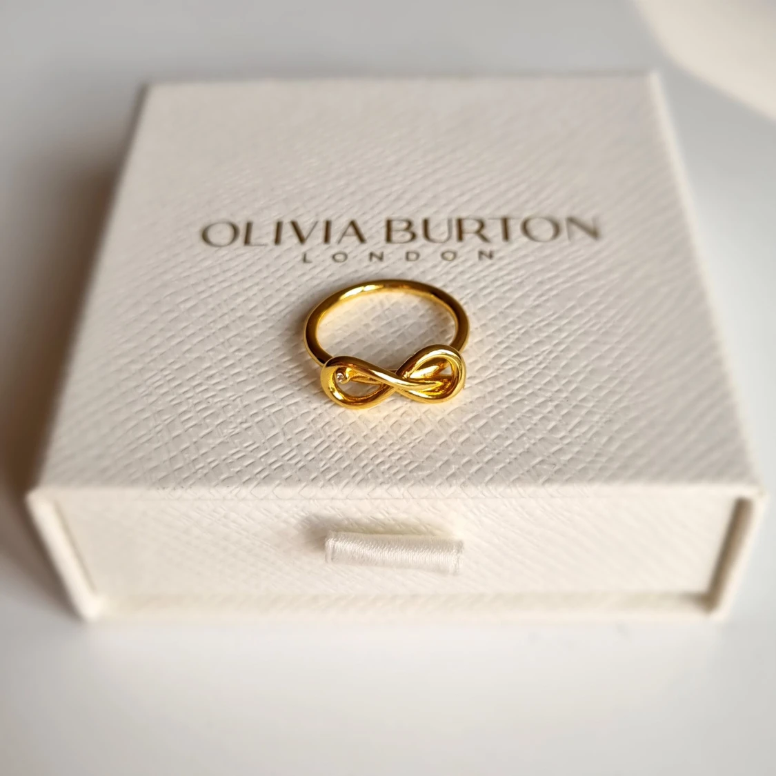 Snygg guldfärgad ring med en elegant infinity-symbol framtill. Ringen har en stilren och modern design som verkligen sticker ut. Perfekt accessoar för dig som gillar minimalistiska smycken med en twist. Lådan ingår ej.