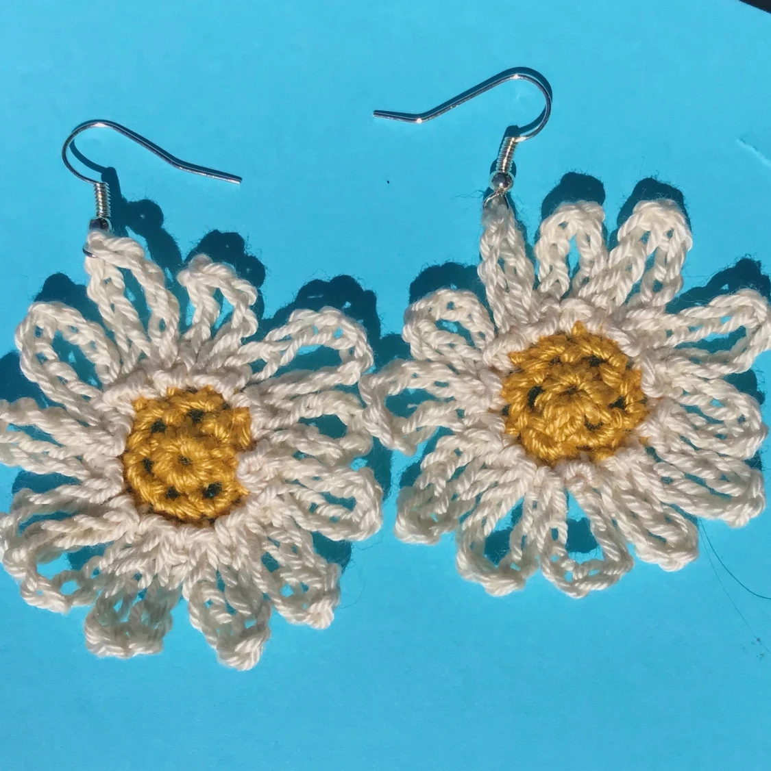 supersöta örhängen som jag virkat själv:)) de är superlätta och väldigt sköna att ha i öronen!! frakt tillkommer på 11kr