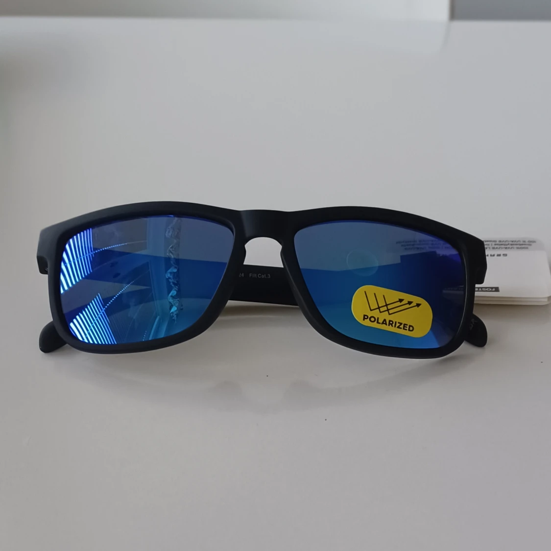Snygga svarta solglasögon från Foster Grant med rektangulär form och blåtonade polariserade linser. Bågarna är mattsvarta och tillverkade i plast. Perfekta för soliga dagar och ger 100% UVA-UVB skydd.