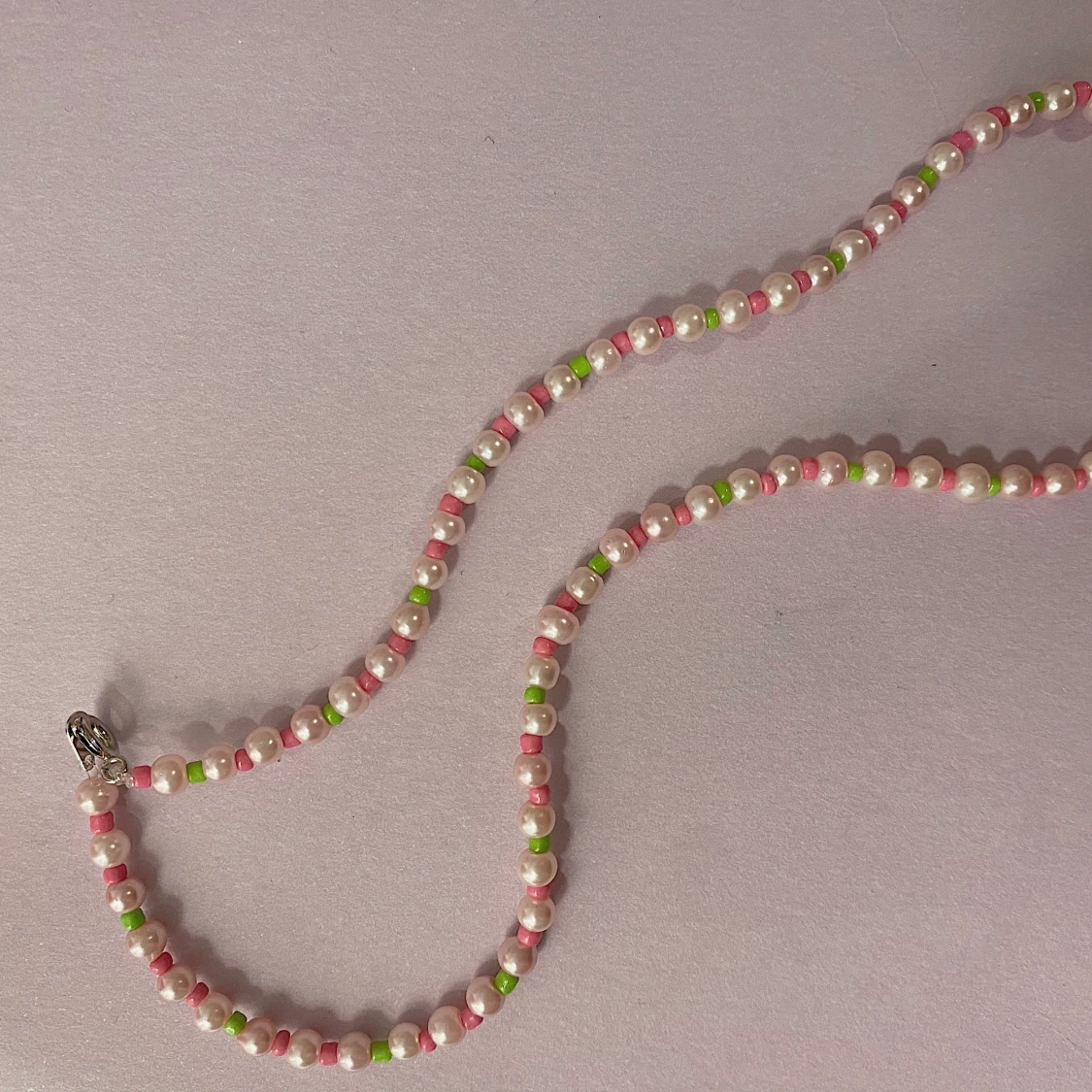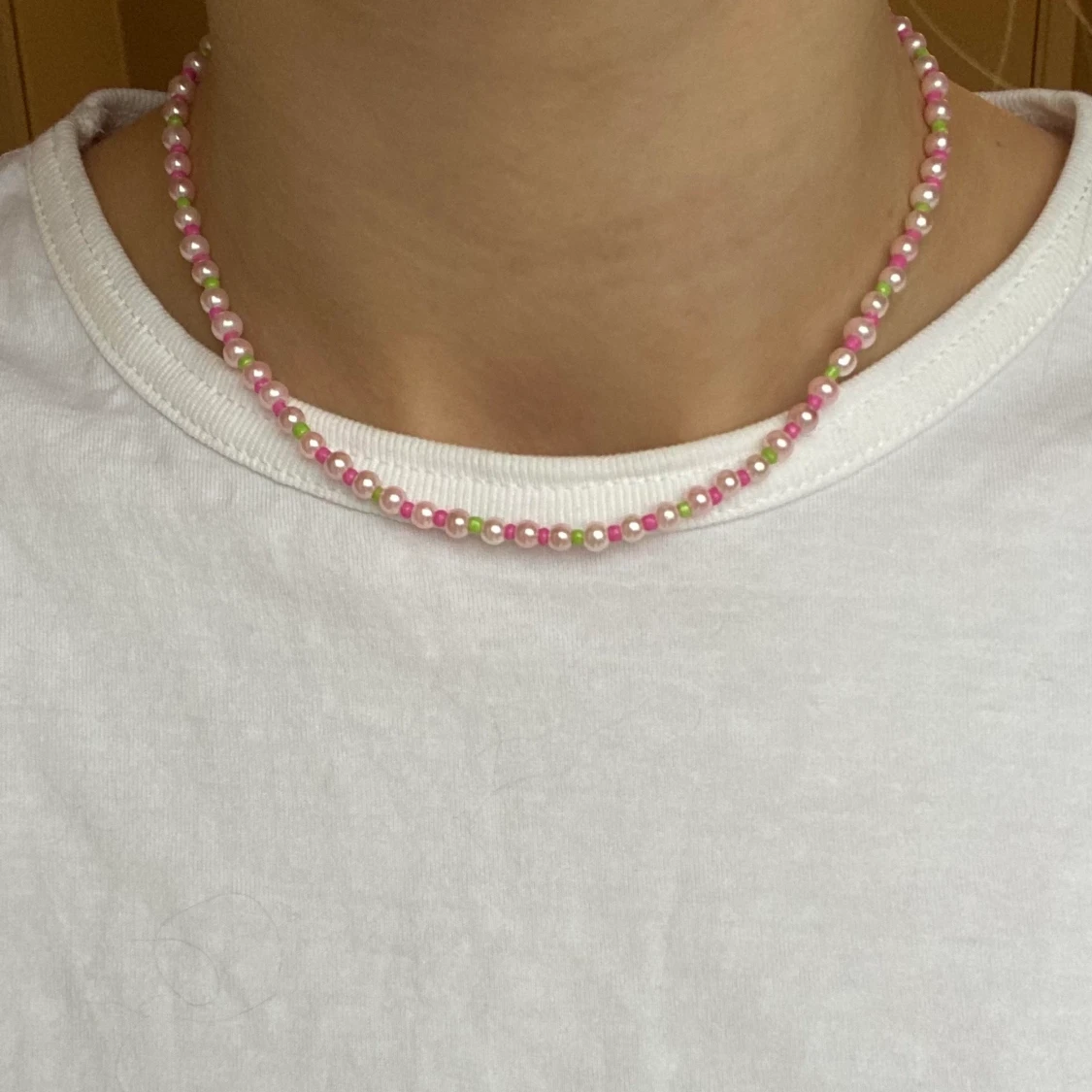 Jättefint hemmagjort halsband av pärlor i en rosa ton och små färgglada pärlor ⭐️(frakt ingår i priset)⭐️