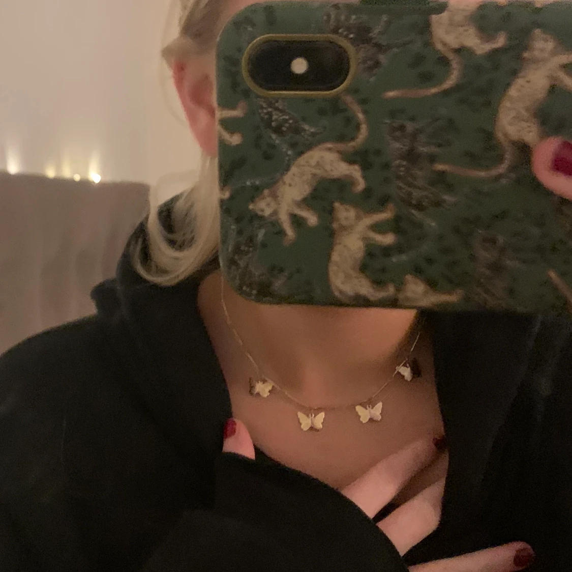 Säljer mitt söta fjärils halsband, detta är använt få gånger!