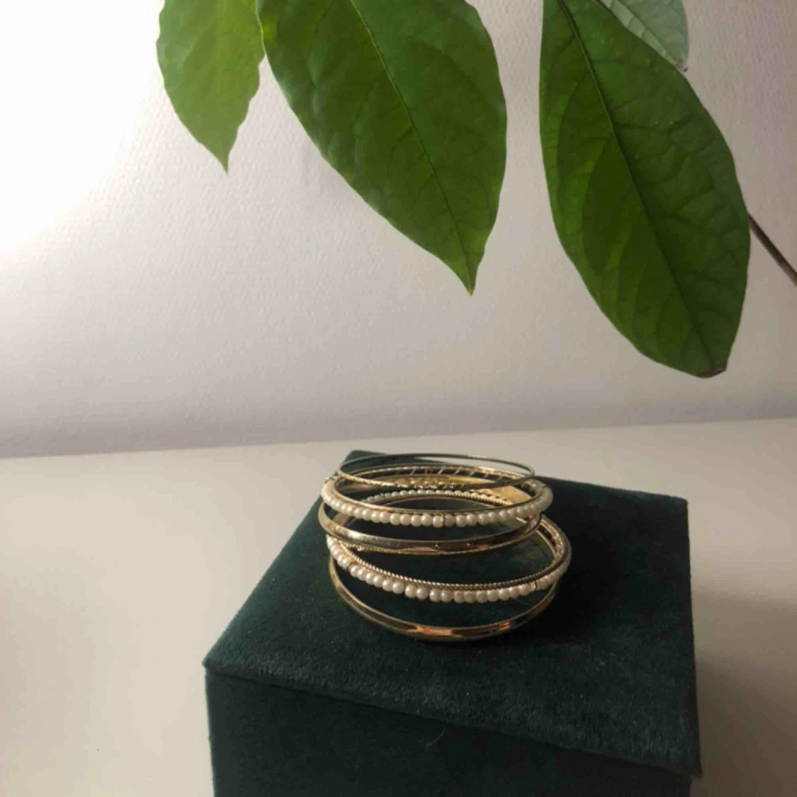 Sju armringar guldfärgade, 6,5 cm i diameter