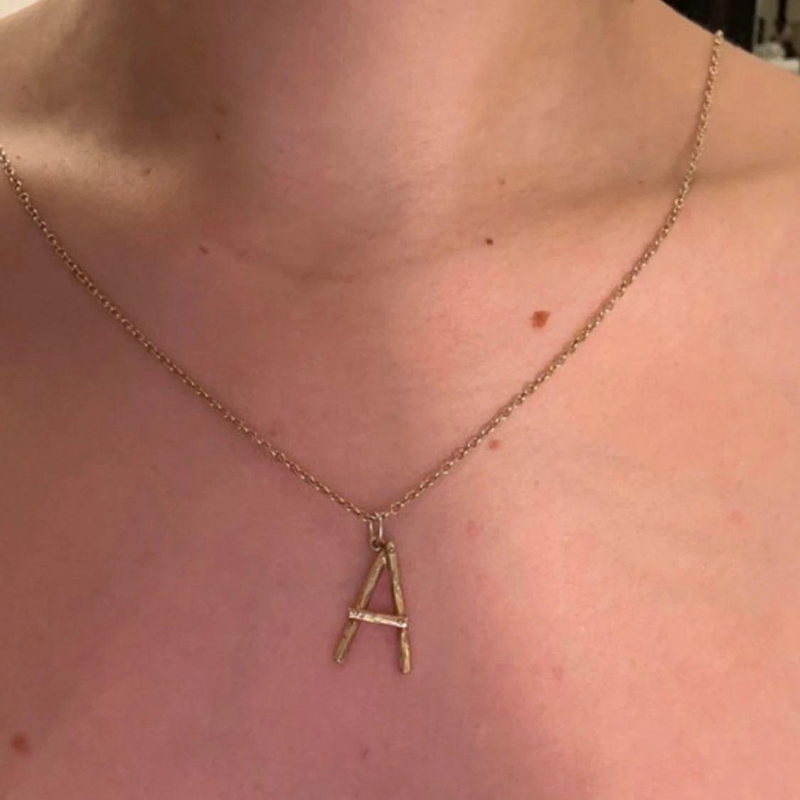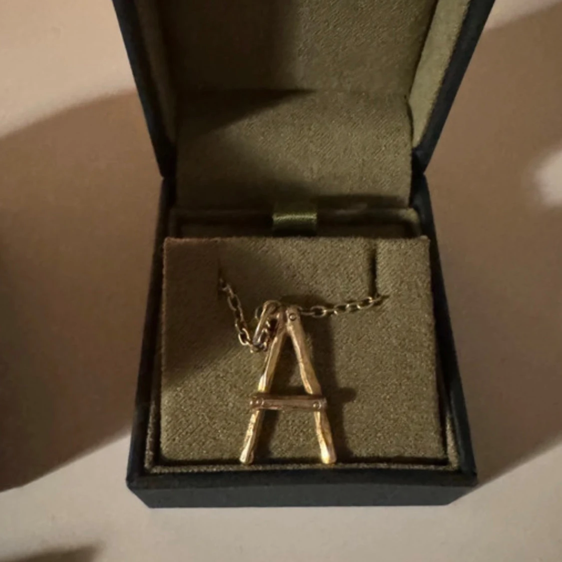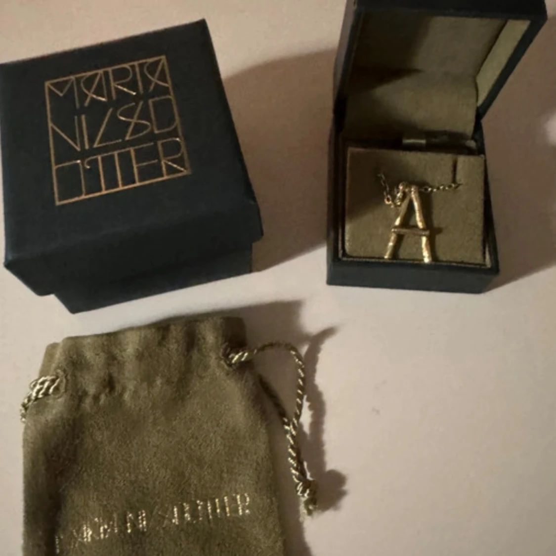 .Guldpläterat halsband från Maria Nilsdotter. Kedjan är 45cm lång. Materialet under pläderingen är silver. Pläderingen är något nött. Kommer med ask.