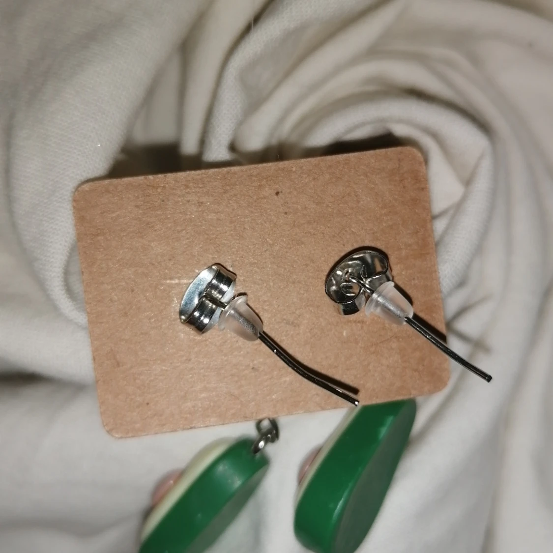 Ett par avokado örhängen. Med pluppar så dom sitter fast, ✨. 25 kr🤍