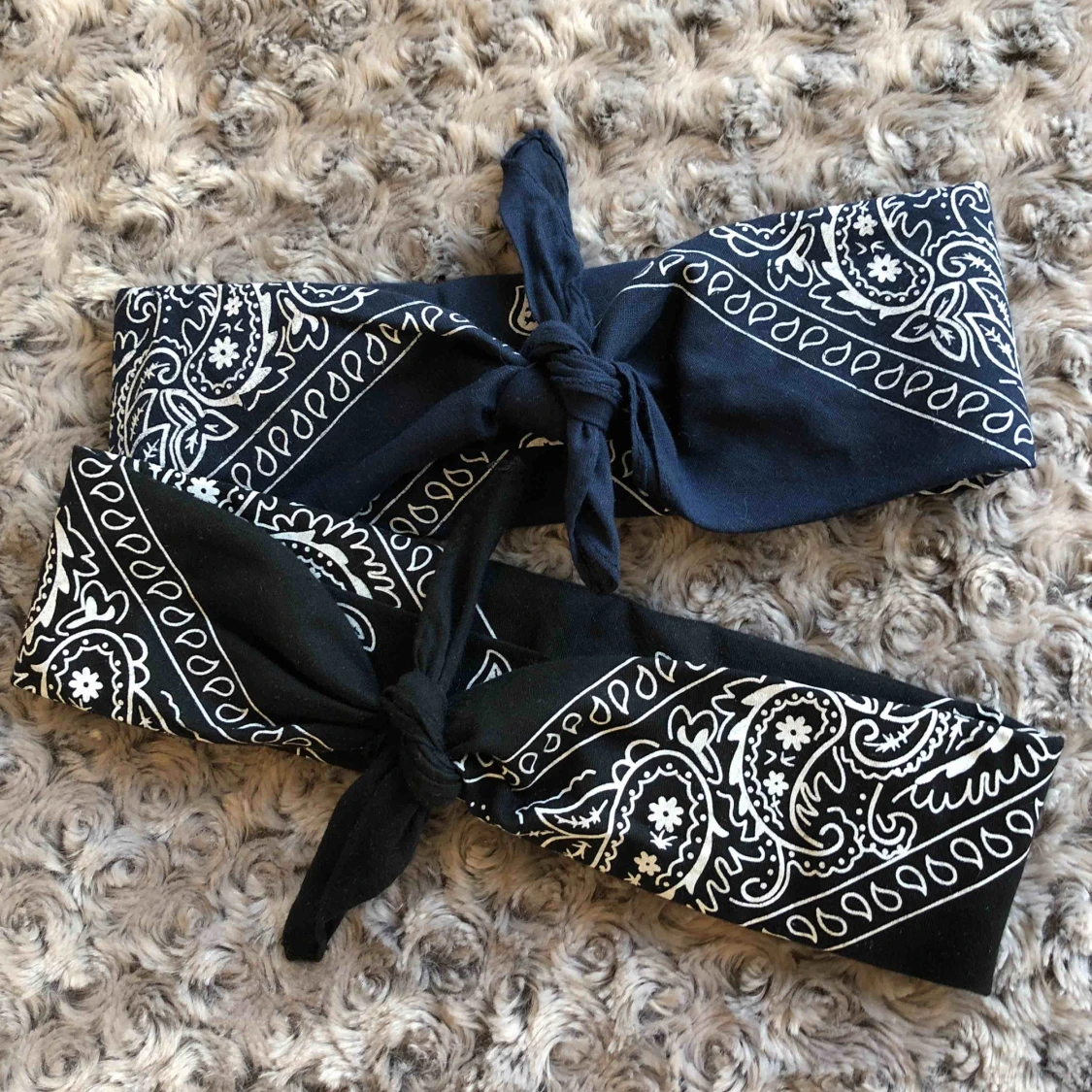 2st bandana i färgerna svart och marinblå. DEN SVARTA ÄR SÅLD! Säljer för 25kr+ frakt (det är samma storlek bara att jag vikt de på olika sätt)