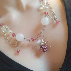 Hemmagjort halsband med spindelhänge. Gjort med ståltråd och pärlor. Köparen står för frakt! Skriv vid mer frågor😊