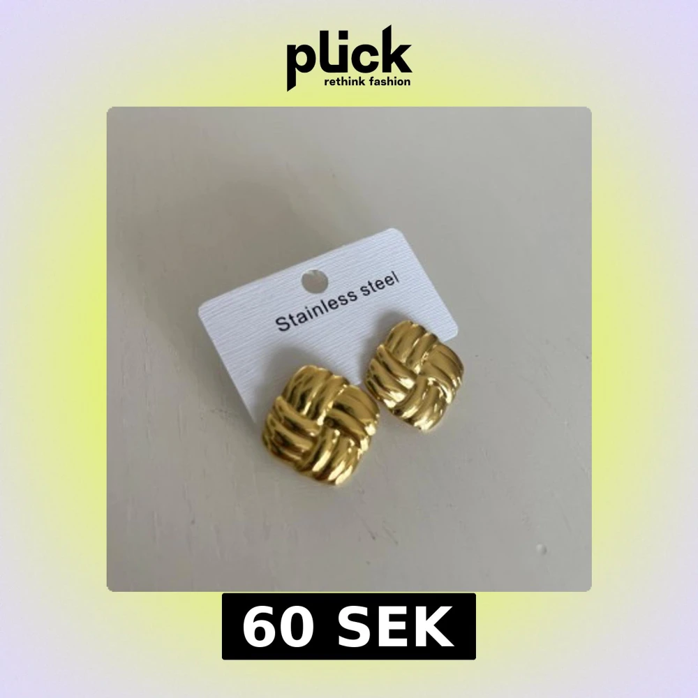 Snygga guldpläterade 14k örhängen i rostfritt stål med en flätad design. Perfekta för att ge en elegant touch till din outfit. De är både stilrena och hållbara. Nya och aldrig provade.