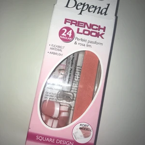 Oanvända lösnaglar från depend💅🏼 Har testat naglarna på mig själv (utan limm) och har även testat att måla ett par av dem men det är borttaget😊 Alla 24 naglar är hela och finns med! limm, fil och övriga redskap finns med i förpackningen💕