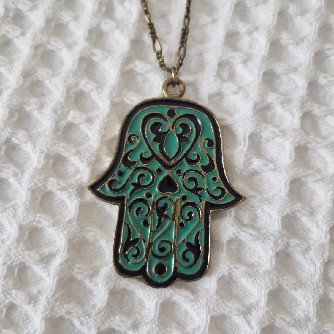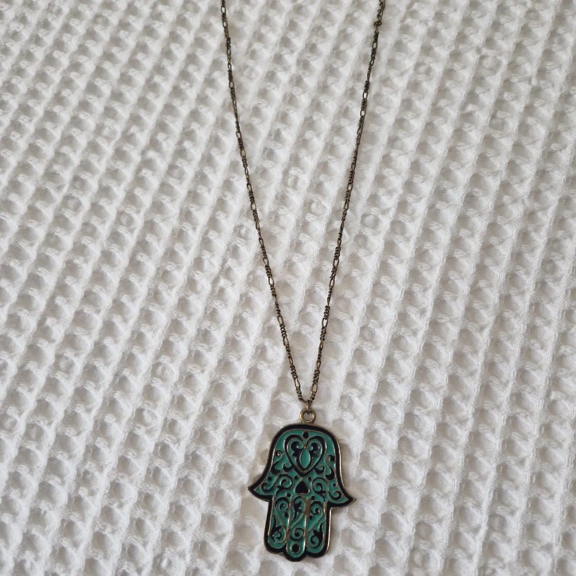 Coolt "fatimas hand" / onda ögat halsband. Lång länk.