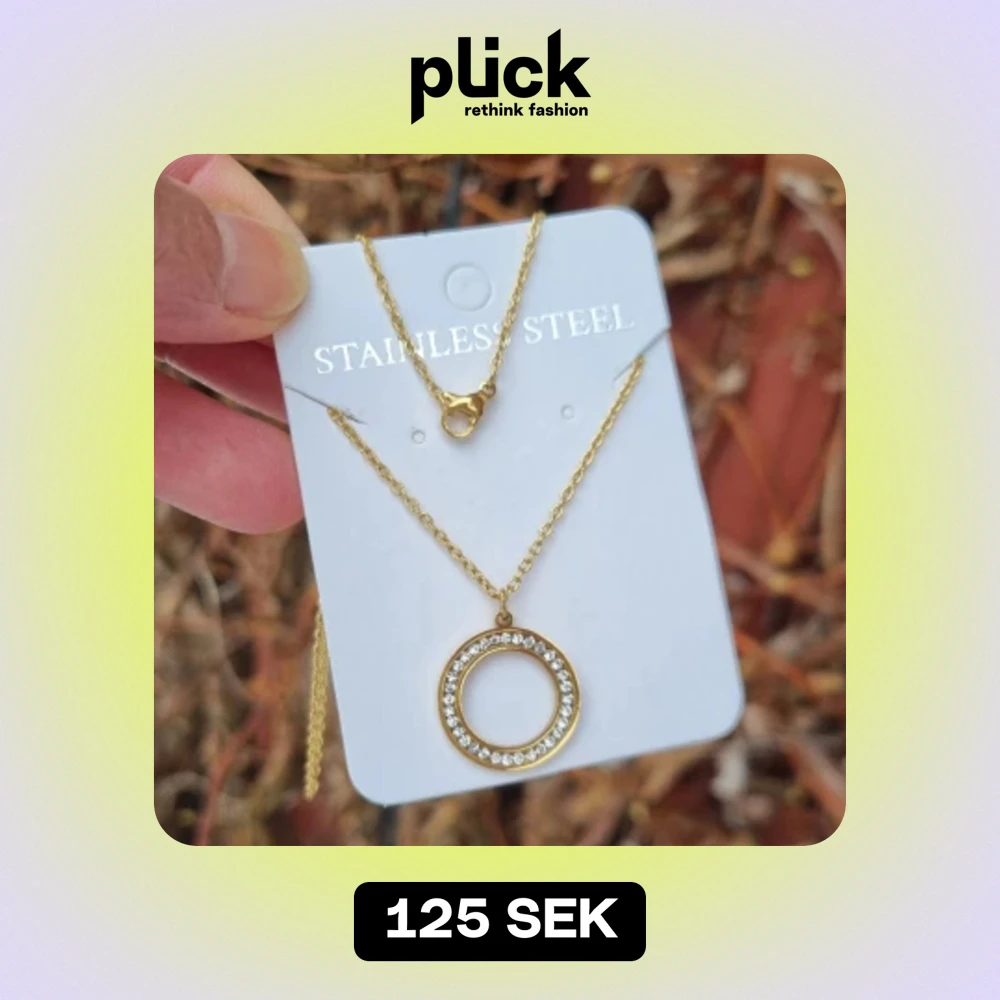 Necklace with ring pendant and a crystal filled design. Stainless Steel Material in Color Gold Plated. Fashion Daily Use.